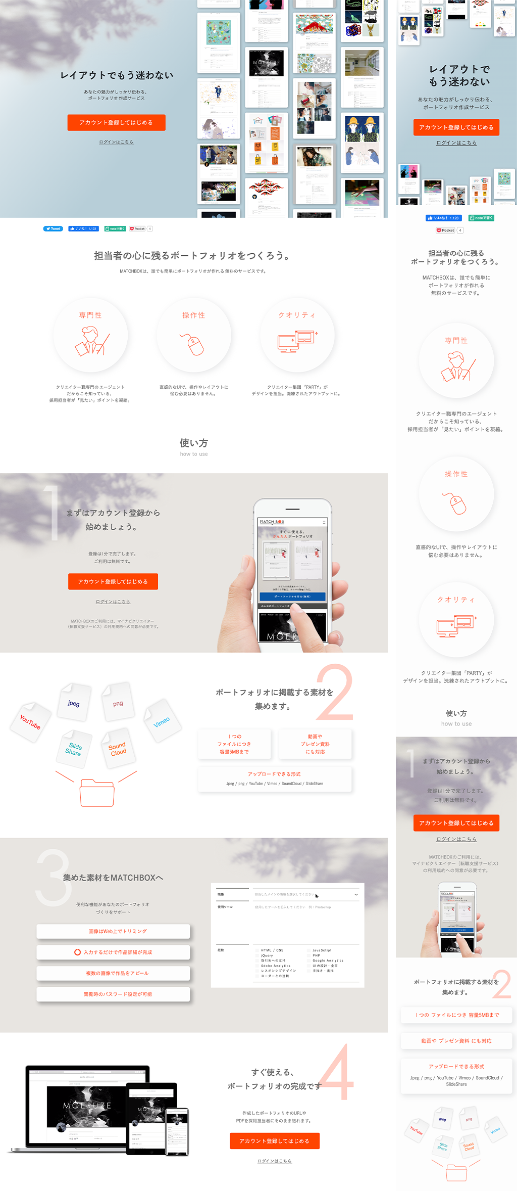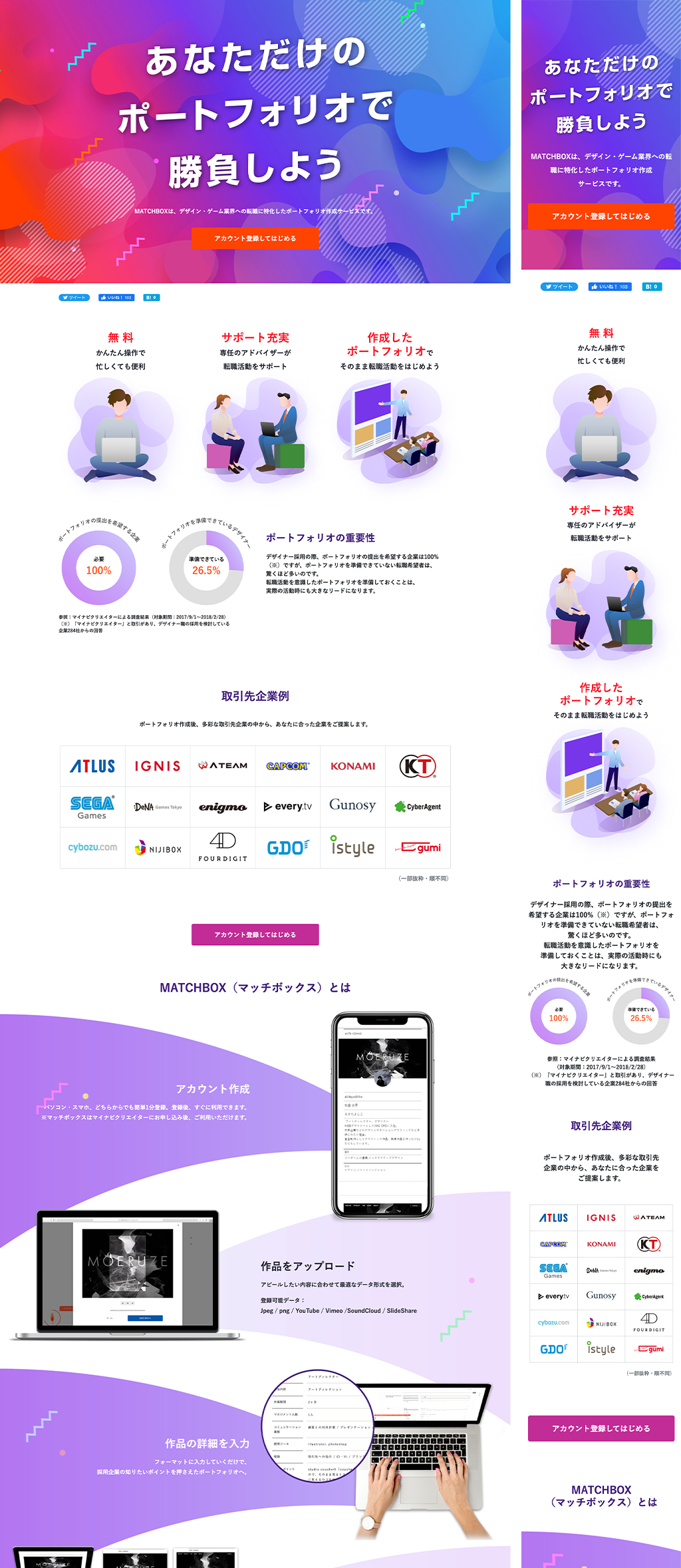 ポートフォリオ作成サービスの「MATCHBOX」を紹 介するLP・広告バナーを制作
